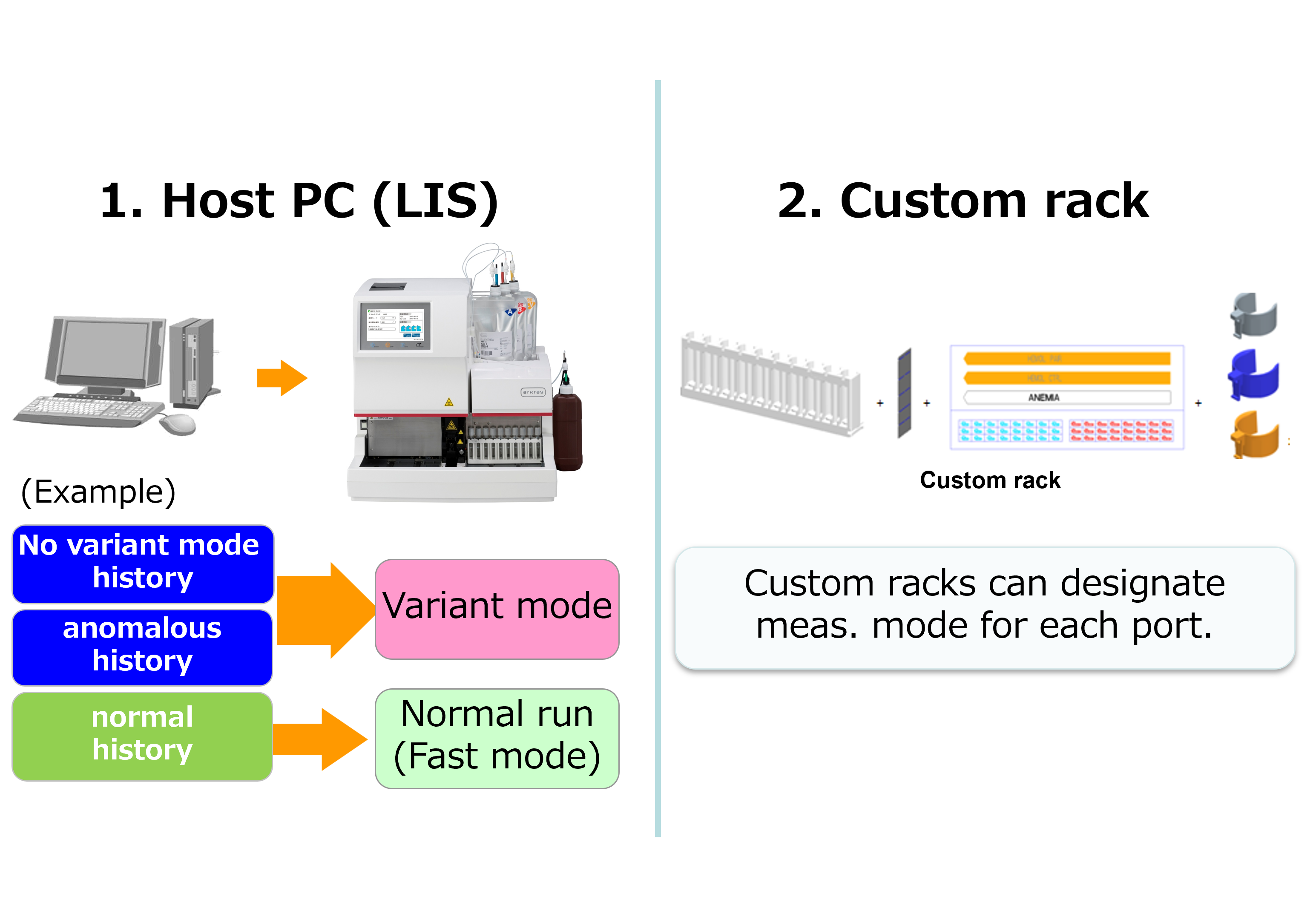| Measurement items | HbA1c (stable HbA1c), HbF (In Variant mode, HbS and HbC can be separated and HbE and HbD can be detected) |