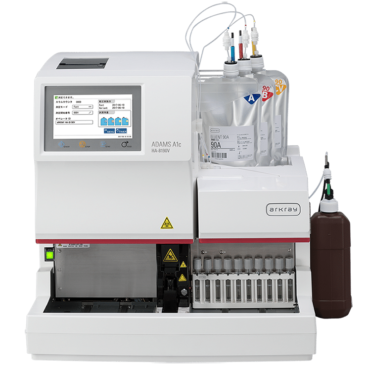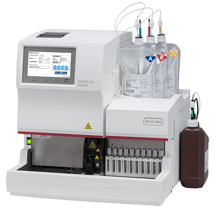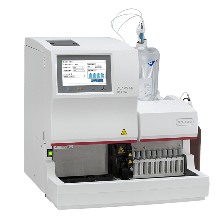 This is a fully automated Glycohemoglobin (HbA1c) analyzer based on HPLC (High Performance Liquid Chromatography).